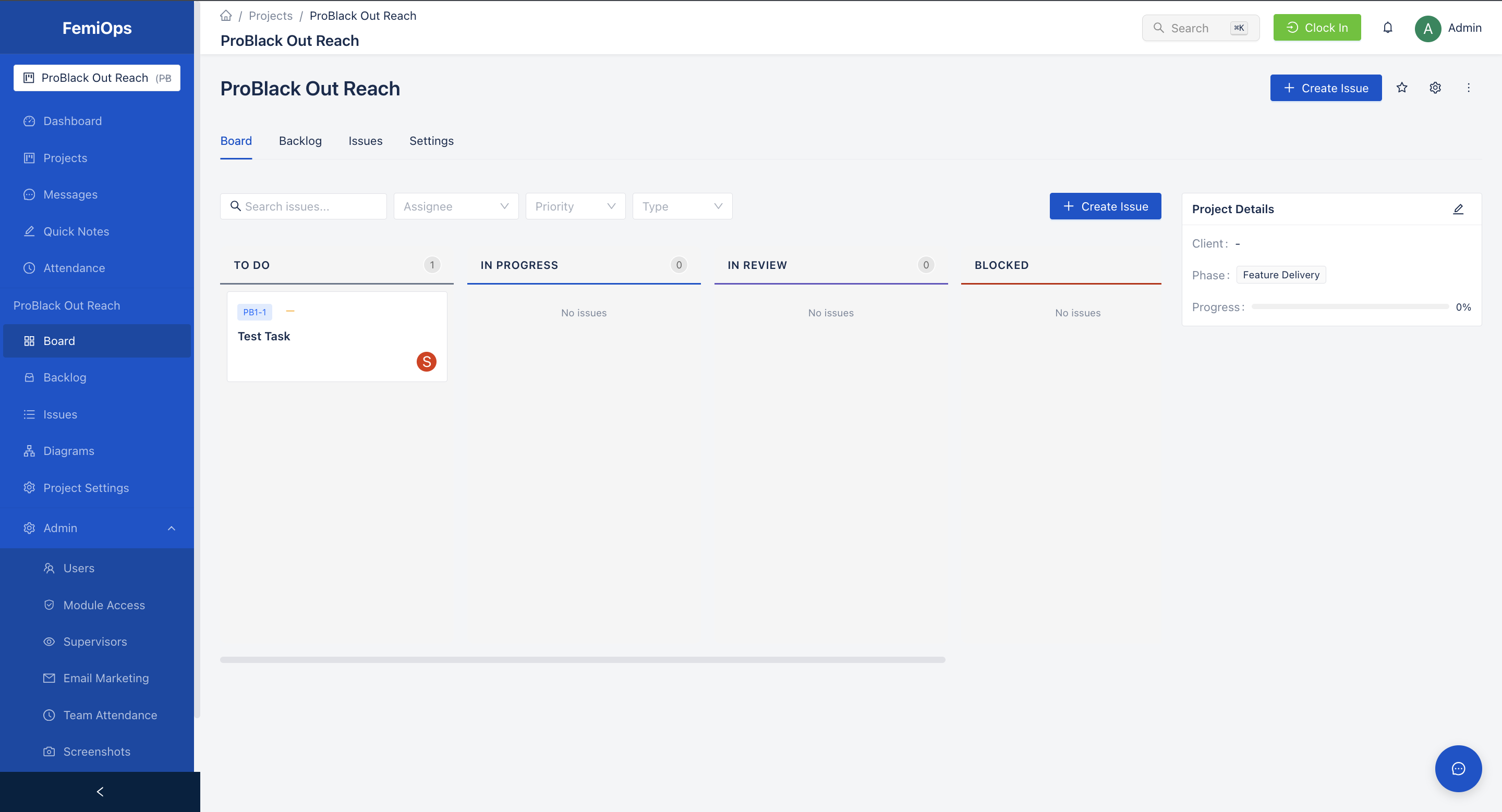 FemiOps is a comprehensive internal company tool designed to streamline operations for startups and growing teams. Originally built as a Jira-like project management system with Slack integration, it evolved to include email marketing, in-app messaging, client portals, and workforce management.